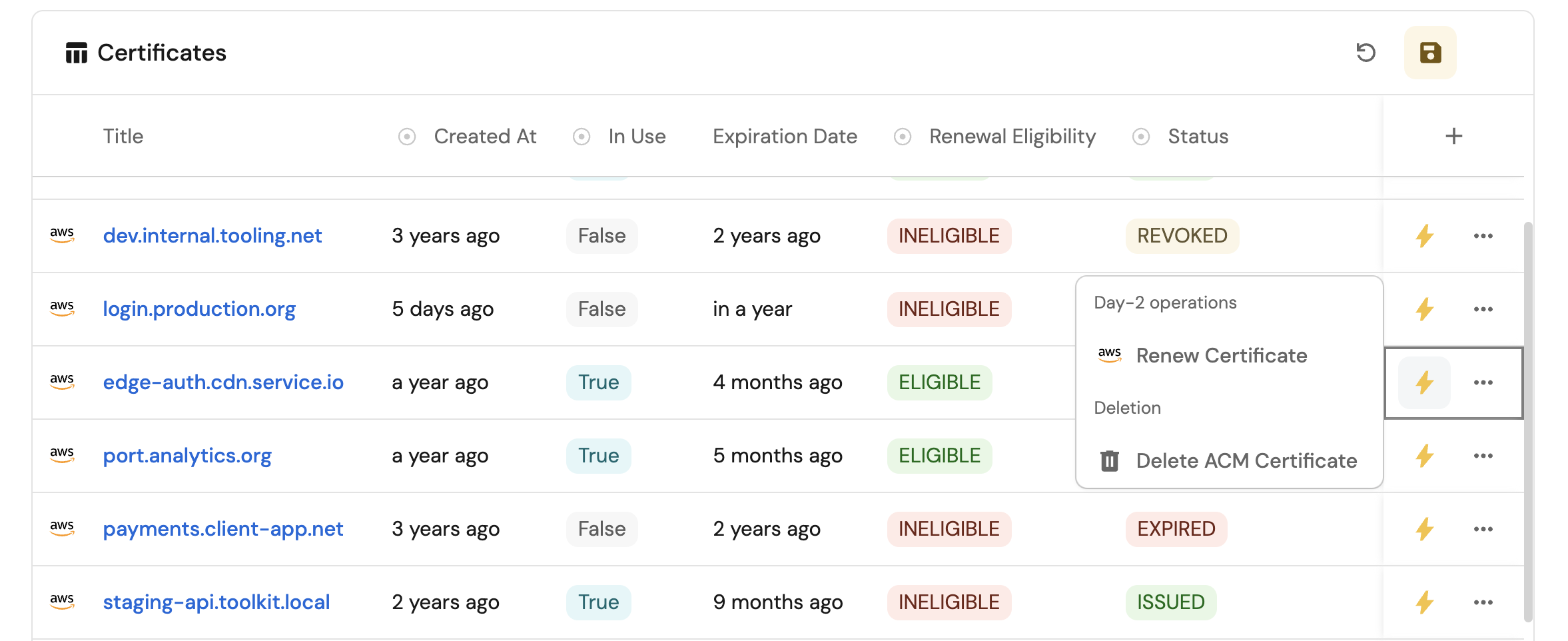 This guide demonstrates how to bring your AWS ACM certificate management experience into Port. You will learn how to: