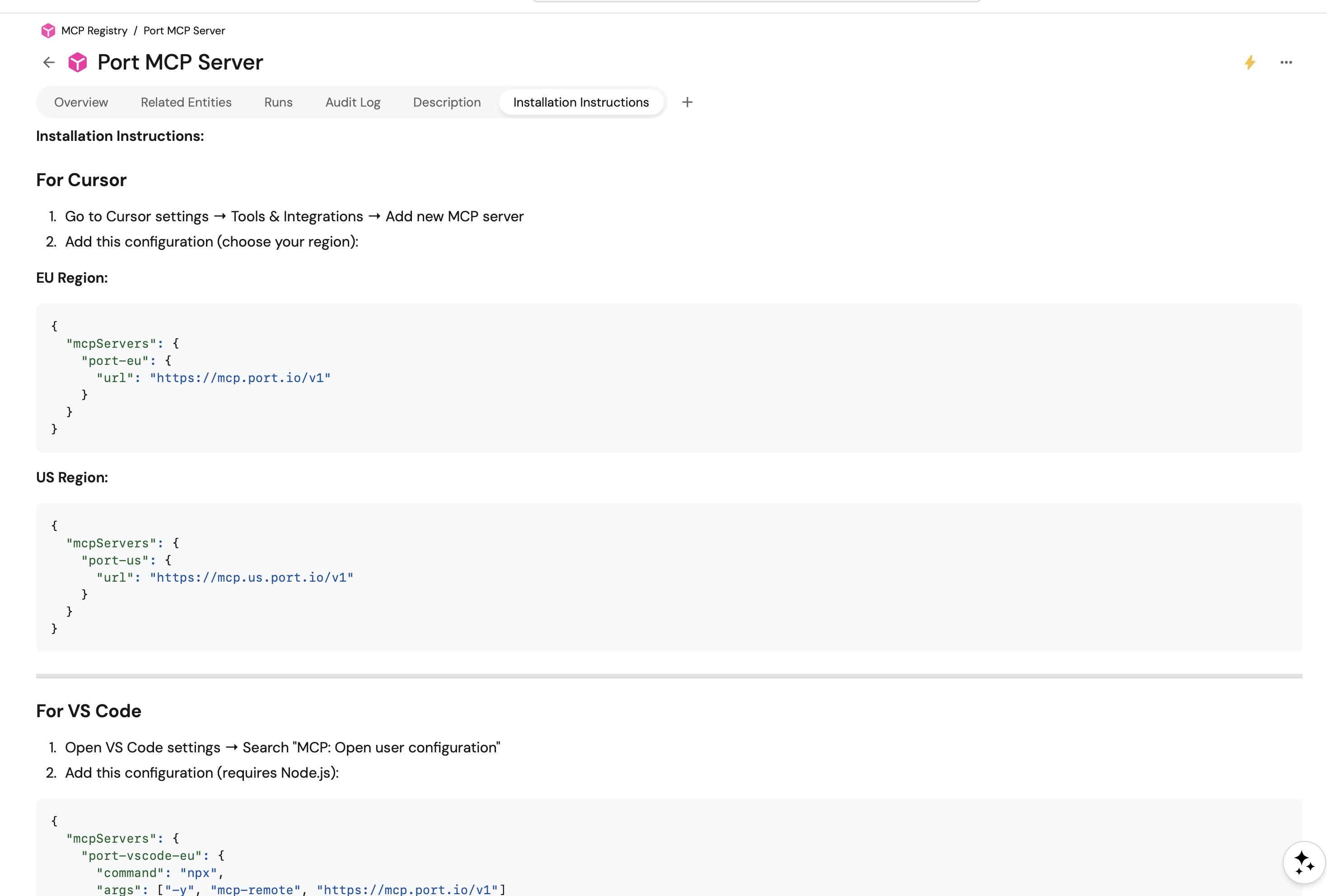 This guide demonstrates how to build a centralized MCP (Model Context Protocol) server registry using Port, enabling your organization to govern, discover, and share approved MCP servers across development teams.