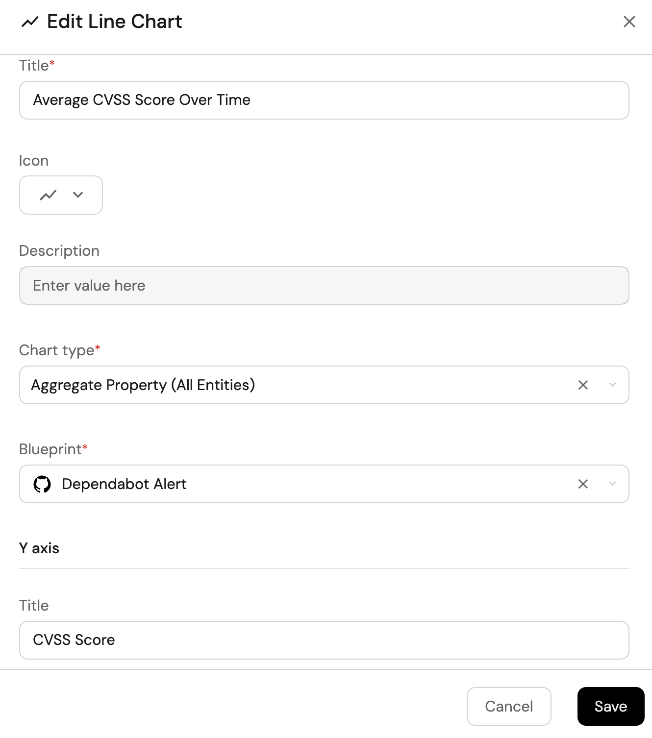 Aggregate Property (All Entities)Chart type and choose Dependabot Alert as the Blueprint. -