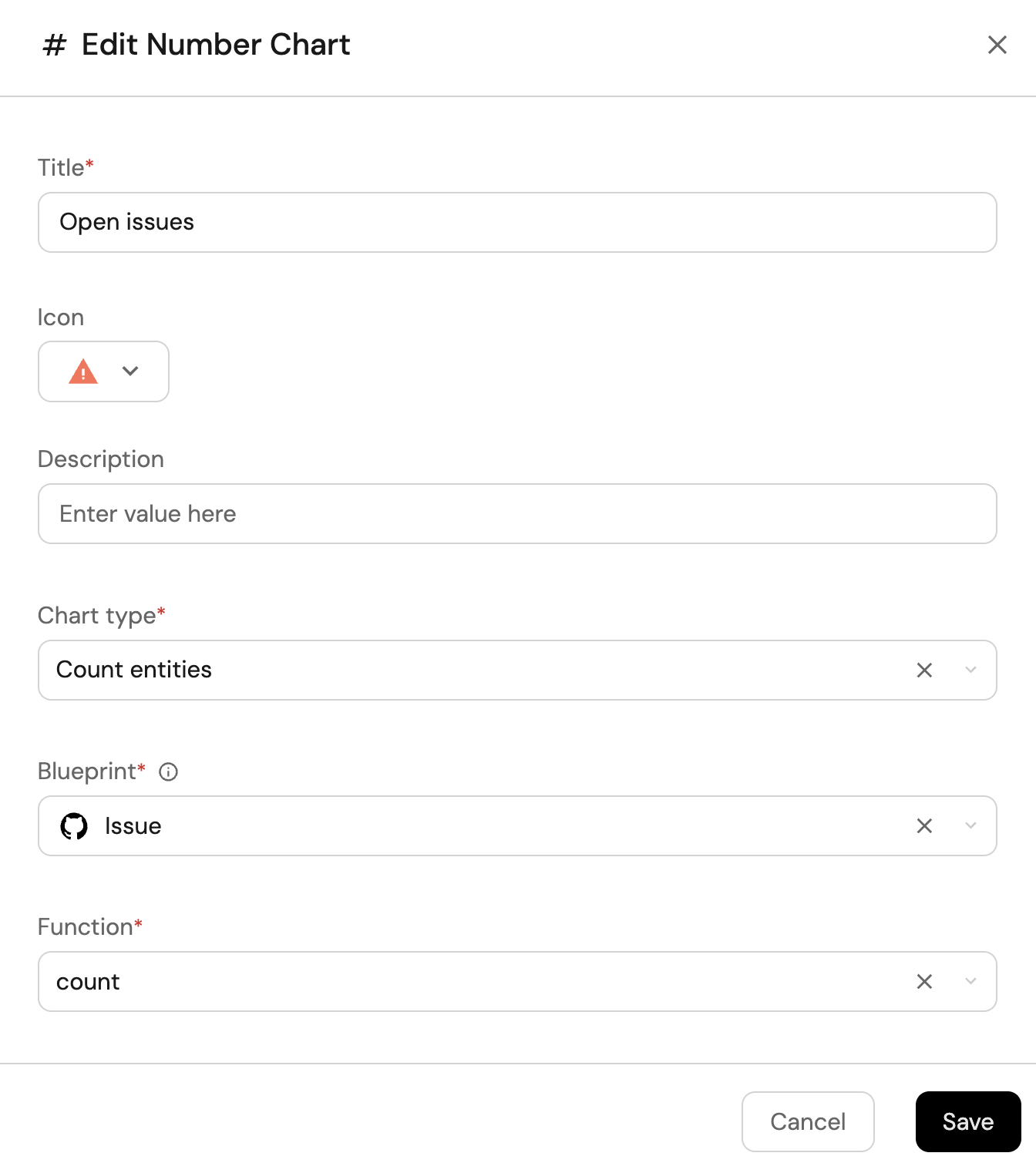 Count entitiesChart type and choose Issue as the Blueprint. -